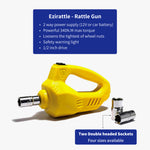 1. Connect the power cable to your Ezirattle Gun, put the correct socket adaptor on. The Rattle Gun will only work once you have it attached to the wheel nuts. Hold your finger on the button and it will spin for a little bit, and then click the wheel nut off.  Make sure your finger stays on the button.